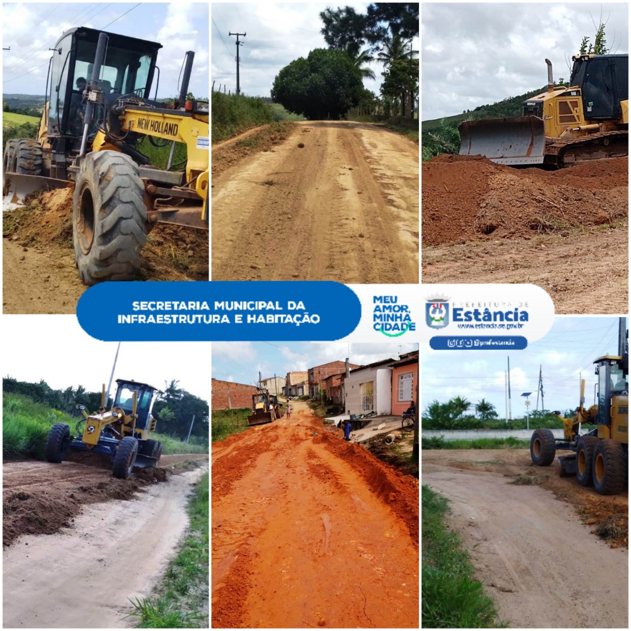 A Secretaria Municipal da Infraestrutura e Habitação, através do Departamento de Estradas de Rodagens, está com trabalhos incessantes no que tange os serviços de melhoria das estradas da zona rural, muitas dessas, com danos causados pelas chuvas deste inverno. Esta semana as equipes atuaram no aparelhamento das estradas do Povoado Dizilena, do Assentamento Paulo Freire, bem como na estrada do Povoado Progresso (João Dias) e, ainda, efetuou a implantação de manilhas na Travessa Osório Ramos, visando por fim a uma concentração de águas no leito da rua.