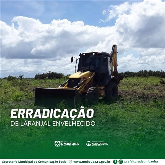 A Gestão Municipal, por meio da Secretaria Municipal de Agricultura após uma trégua das chuvas, realizou a erradicação de um laranjal envelhecido no Povoado Queimada Grande, onde o produtor pretende implantar uma nova área com a cultura da laranja, consorciada com a cultura do maracujá.