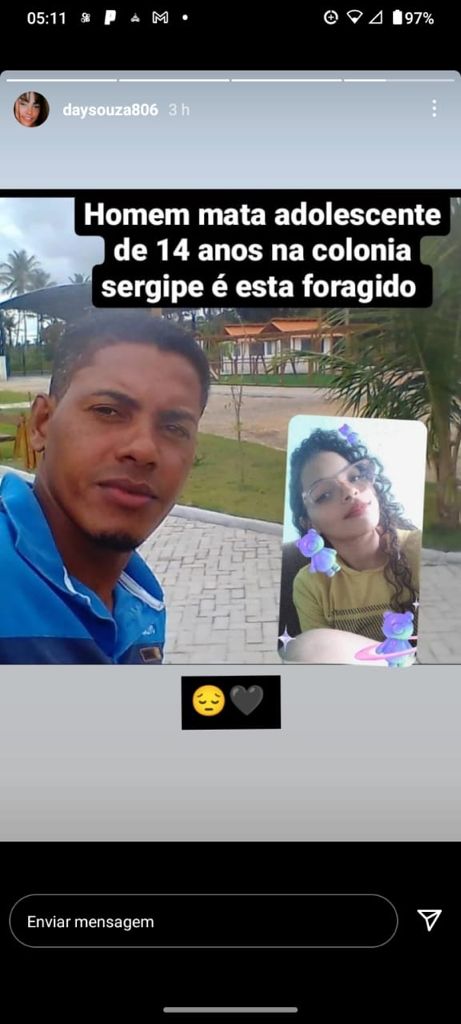 Indiaroba amanheceu triste, de luto, pelo feminicidio cometido pelo padastro da vitima, o monstro inconformado com o fim do seu relacionamento com sua companheira, mãe da vitima, que fora barbaramente assassinada sendo degolada no fundo quintal. Este crime aconteceu na Colônia Sergipe no município de Indiaroba SE Neste relacionamento o monstro era pai de duas criança,inclusive uma de 5 anos que presenciou este ato triste e monstruoso.O referido monstro mora na cidade Cachoeira da Abadia do estado da Bahia.