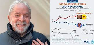 PoderData: Lula amplia vantagem e venceria Bolsonaro por 55% a 30% no segundo turno