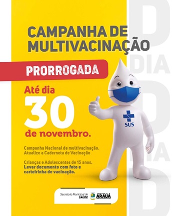 SAUDE PREFEITURA MUNICIPAL DE ARAUÁ PRORROGAÇÃO DE VACINAS 11 de novembro de 2021 Chiquinho 0 comentários