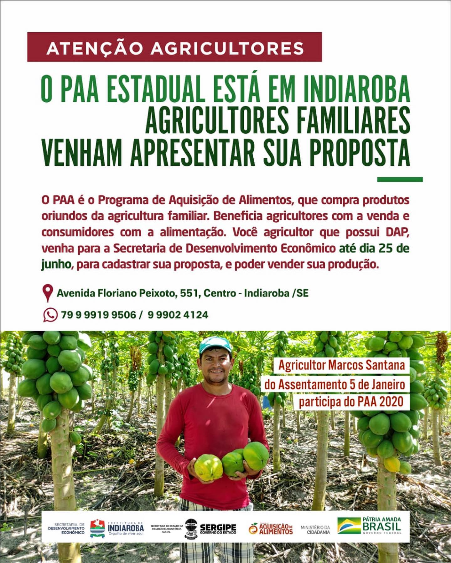 A Prefeitura de Indiaroba através da Secretaria Municipal de Desenvolvimento Econômico, realiza o PAA, uma ação de Aquisição de Alimentos oriundos da agricultura familiar, fique ligada (o) nas dicas e participe.